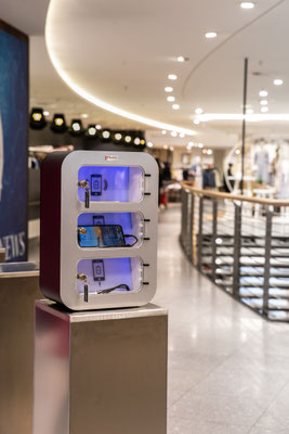 Abschließbar · 3 Ladefächer · Wand- oder Standmontage · Individuelles Branding